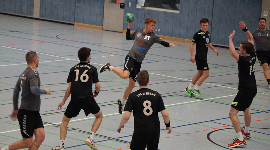 Trotz überschaubarer Personaldecke aufgrund von erkrankten und verletzen Spielern zeigte die HSG Westerwald ein starkes Spiel gegen den bis dahin Tabellenzweiten aus Weibern. In den ersten 16 Spielminuten war die Begegnung bis zum 7:6-Zwischenstand für die Westerwälder absolut ausgeglichen. Die starken Rückraumschützen der Gäste konnten sich bis dahin gut in Szene setzen. Im Angriff fehlte der HSG Westerwald in den Anfangsminuten der letzte Biss. Einige unvorbereitete Torwürfe aus dem Rückraum waren zu harmlos, um den Gästekeeper zu überwinden. Erst in der Folgezeit agierte die Abwehr der Menke-Schützlinge aggressiver und konnte das Spiel des Gästerückraums immer besser in den Griff bekommen. Mit einem 15:11-Vorsprung für die HSG ging es in die Pause.
